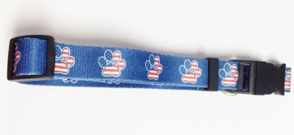 High-quality sublimated American flag pet collar–available in 2 sizes. Look for the matching leash!