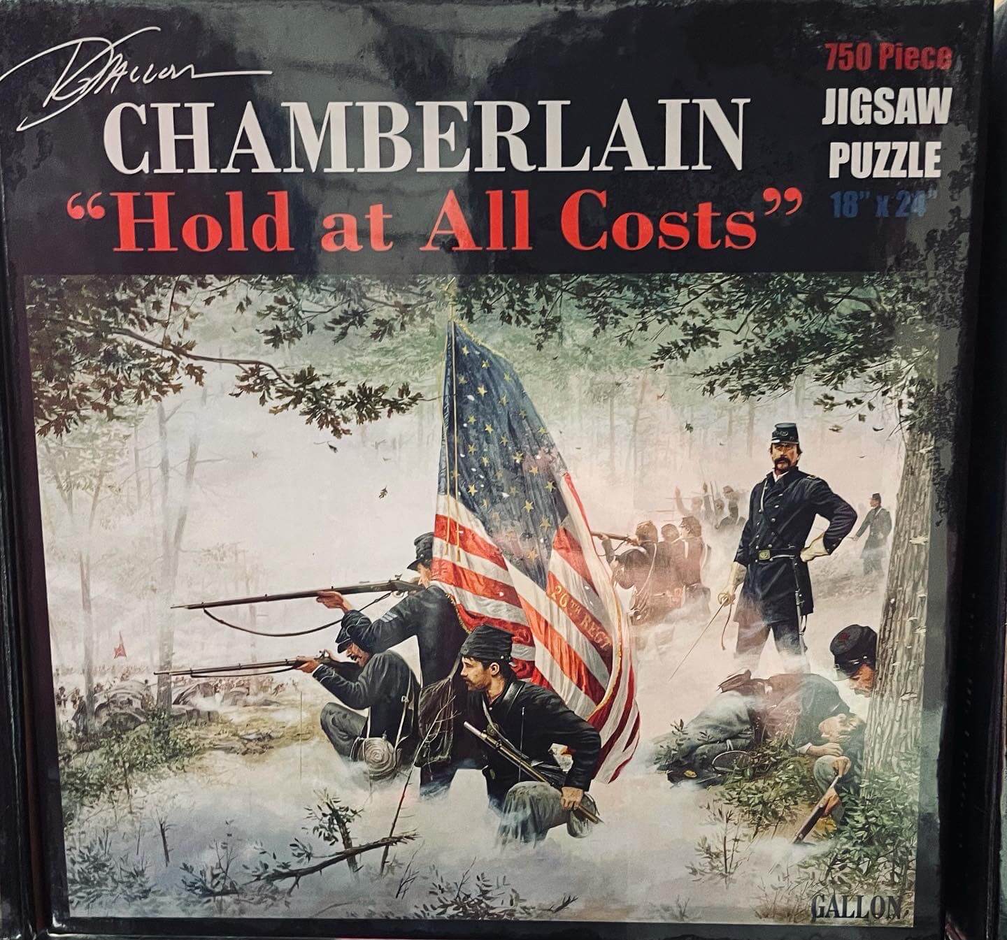 This 750-piece 18″ x 24″ puzzle celebrates Chamberlain’s charge. Art by Dale Gallon.