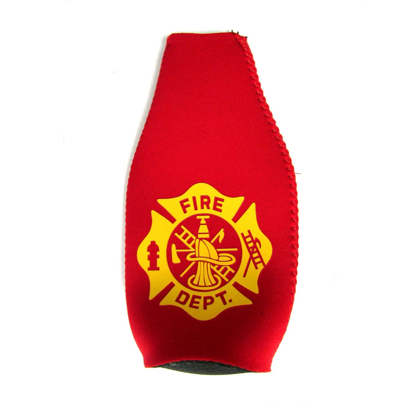 A high quality foam neoprene Fire Dept. bottle jacket to keep your beverages cool! Features a zipper in back. Also available in a can cooler.